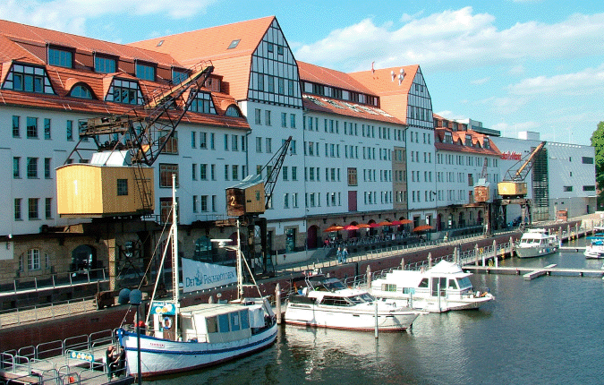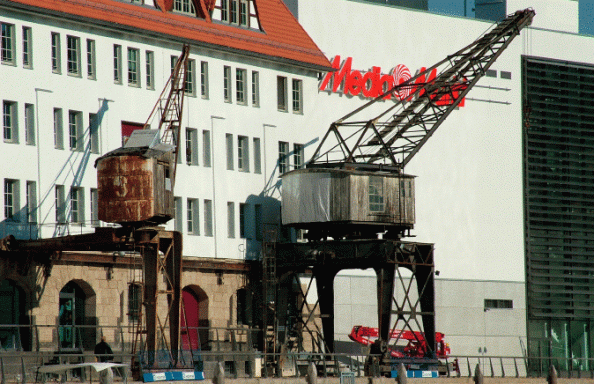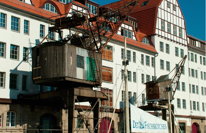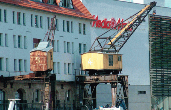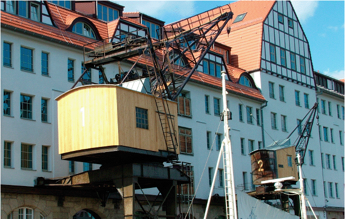 Abriss und neuer Aufbau der kompletten Holzkonstruktion an den 4, im Tempelhofer-Hafen unter Denkmalschutz stehenden, Kranen.