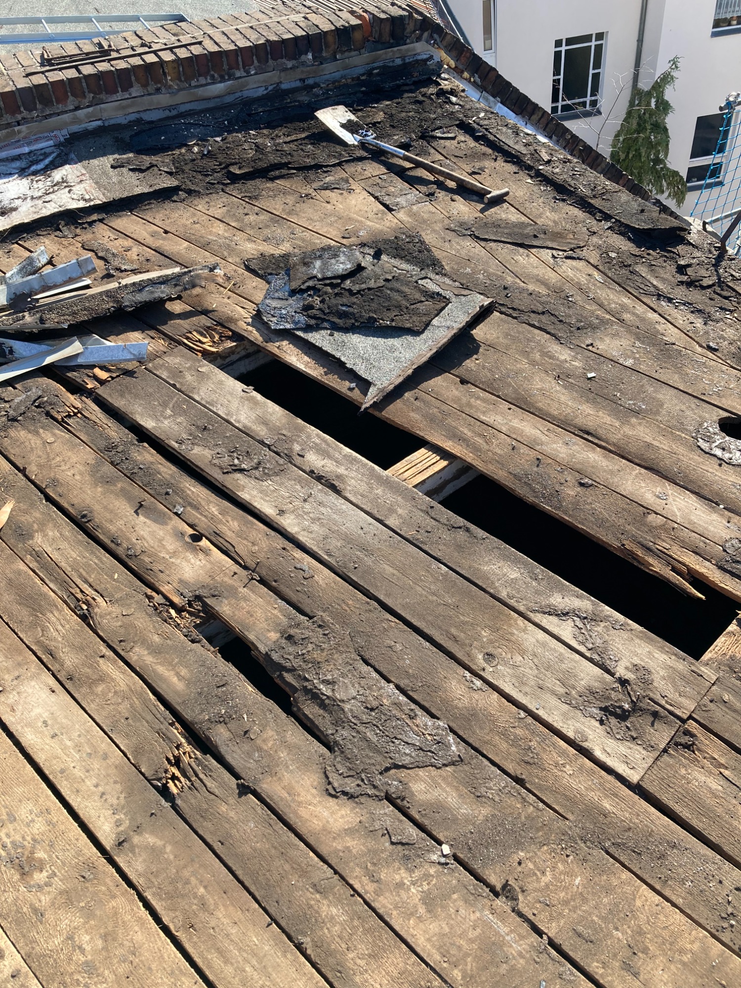 Herstellen eines kompletten Daches im Handabbund nach statischen Vorgaben, anpassen an das alte Bestandsdach, Eindeckung und Spenglerarbeiten.